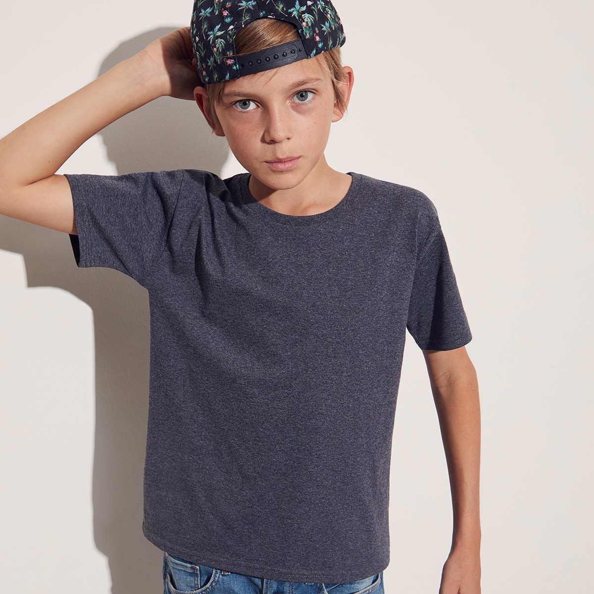 100% Cotone pettinato ringspun. T-shirt soffice al tatto, vestibilità slim fit, girocollo in costina 1x1, etichetta strappabile. Col. 94: 97% cot. 3% pol. Col. HD, VF, HP: 52% cot. 48% pol. (Col. 30: 145 g / m²).