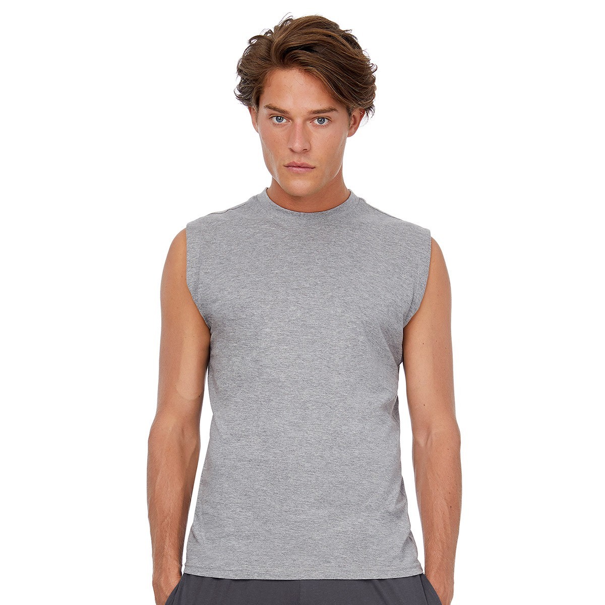 100% cotone ring-spun. Canotta, girocollo con costine 1x1 con elastan, struttura con cuciture laterali. Orlo inferiore e giromanica con doppie impunture. SG620: 85% cot. 15% visc.